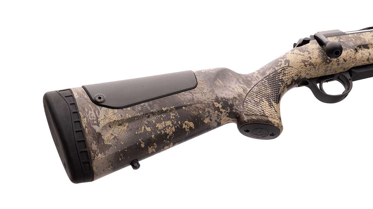 La carabina è disponibile in versione con calciatura nera oppure con finitura camo, in entrambi i casi realizzata con lo stesso polimero e le stesse caratteristiche di assoluta robustezza e resistenza alle intemperie che caratterizzano tutte le calciature in polimero Sabatti. Calciolo in gomma e poggia guancia sono gli stessi presenti sulla famiglia Rover ed è quindi utilizzabile lo stesso kit opzionale con due poggia guancia maggiorati e due spessori aggiuntivi per il calciolo.